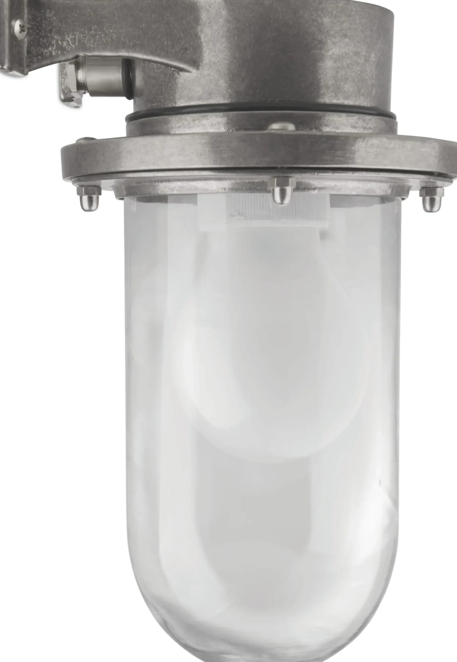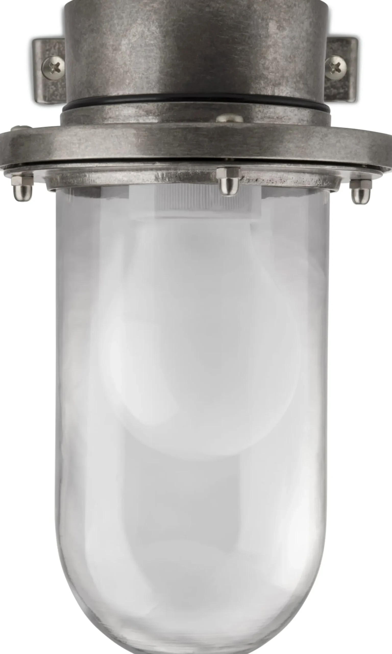 Universal einsetzbare Wand- und Deckenleuchte: NAUTICO des belgischen Herstellers Zangra hat einen Glasschirm und einen Sockel aus vernickeltem Messing. Diese Beschichtung schützt die Leuchte zuverlässig vor Anlaufen und Korrosion – auch in feuchten Umgebungen. Mit Schutzart IP64 ist sie staub- und spritzwassergeschützt und damit perfekt für Außenbereiche geeignet.