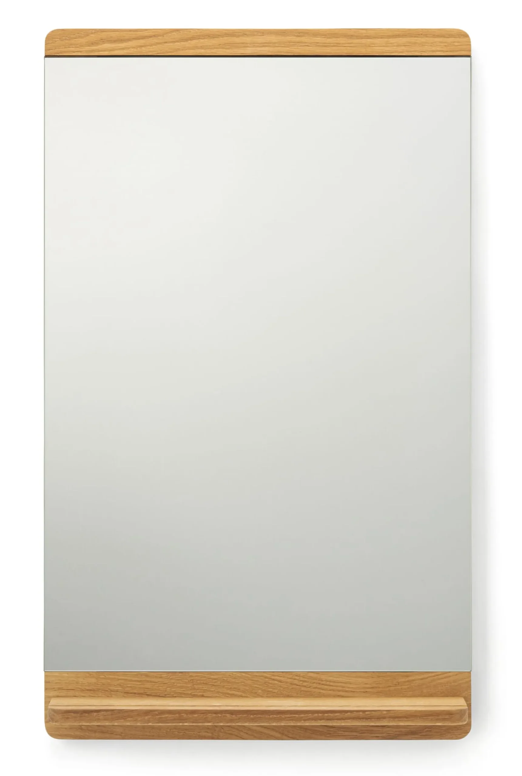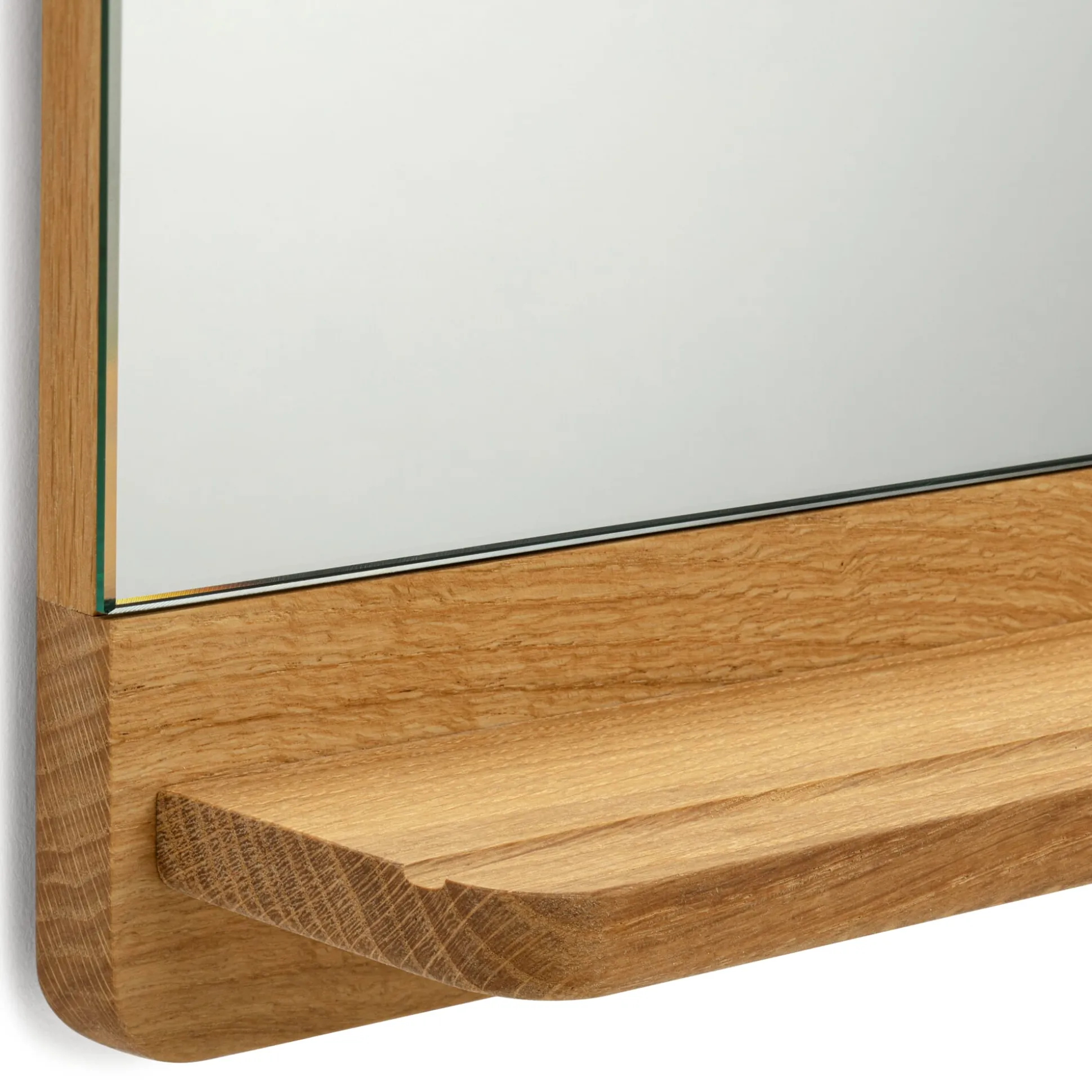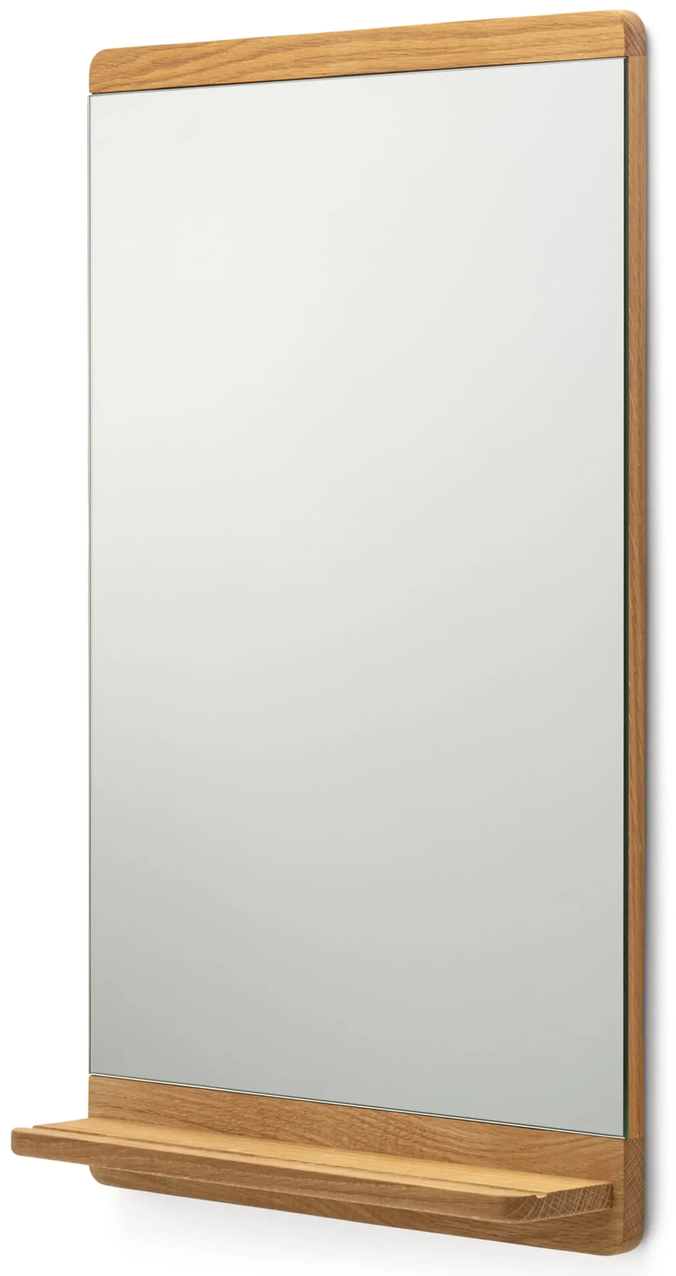 Funktional, klar, handwerklich ausgereift – die Wesensmerkmale der Shaker-Möbel, deren Tradition sich Form & Refine in seinen Entwürfen annähert, sind auch in diesem Wandspiegel vorbildlich umgesetzt. In klassischer Schreinermanier wird das Eichenholz sorgfältig verdübelt, verleimt und abschließend geölt. Dank seiner unaufdringlich geradlinigen Gestaltung fügt sich der Wandspiegel leicht in jedes Interieur ein und tritt dennoch in Flur und Bad hilfreich hervor: mit einem klaren Spiegelbild ebenso wie mit einer Ablage, welche die Utensilien des Alltags griffbereit in Erinnerung hält.