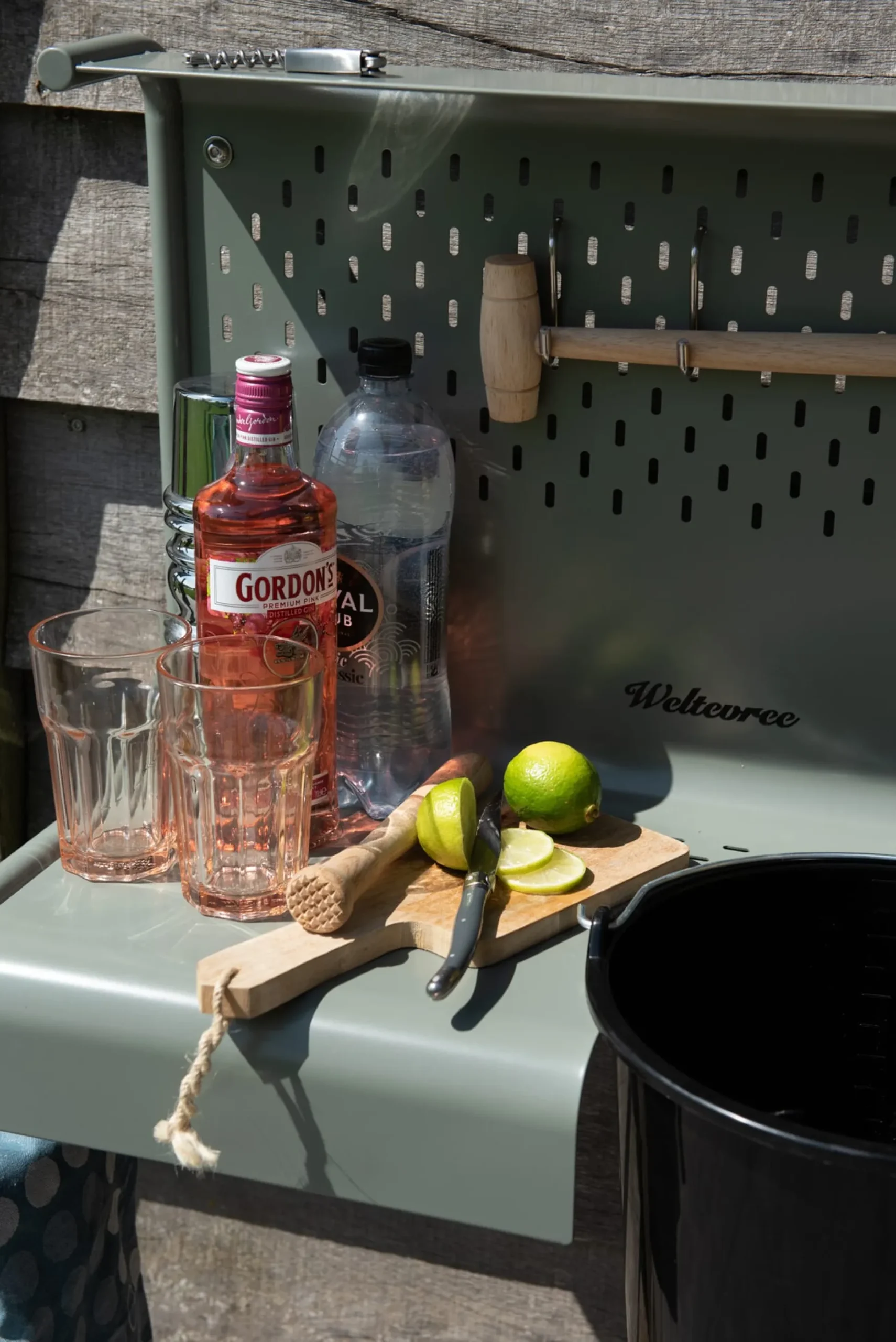 - Kleine Ablage- und Arbeitsfläche für Gartenarbeit, Grillfest oder Cocktailabend
