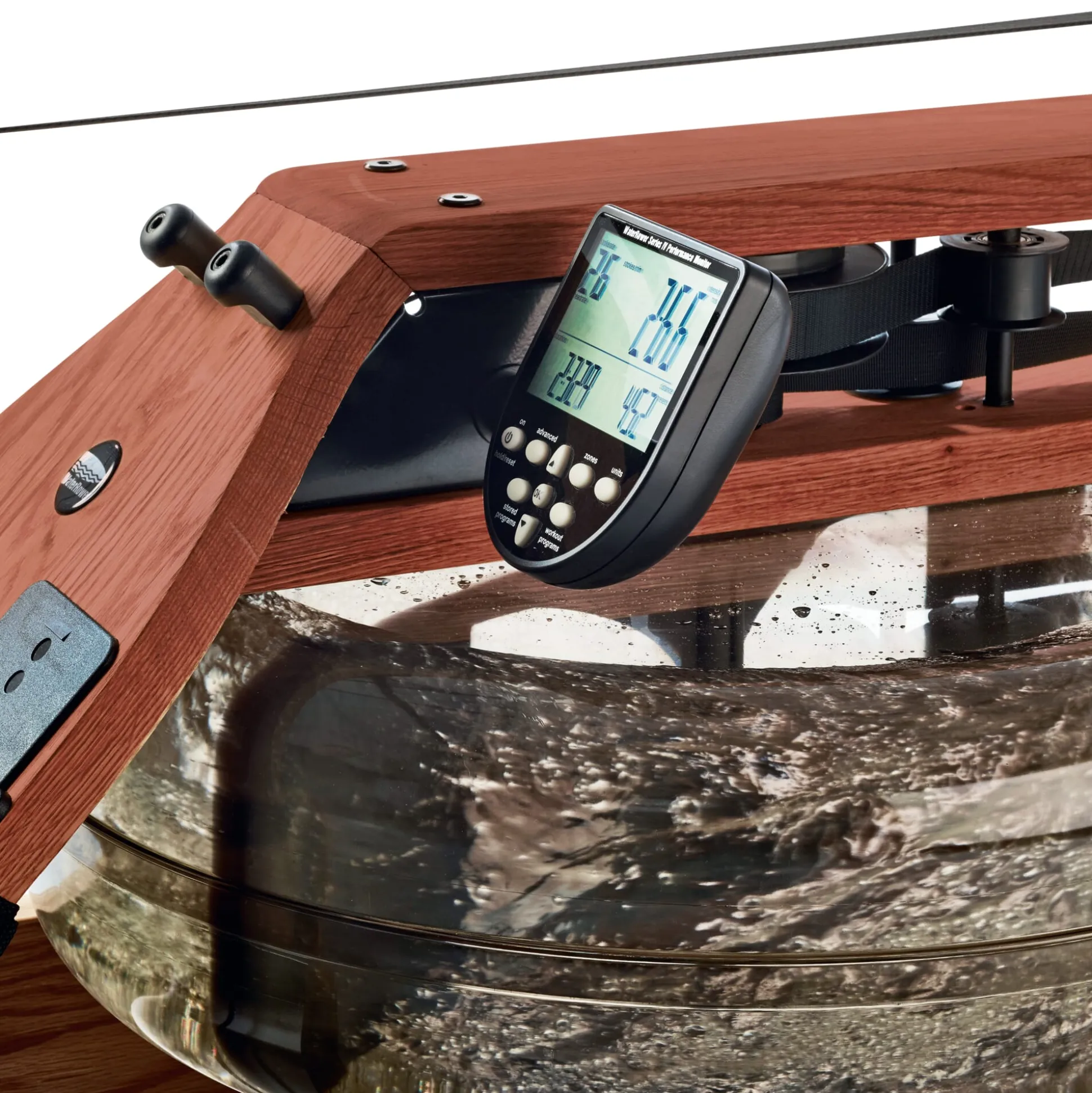 Entwickelt wurde der WaterRower in den 1980er Jahren von Profi-Ruderer John Duke, um auch „trocken“ trainieren zu können. Dabei ist die Technik alles andere als trocken, denn es war das erste Rudergerät, das den nötigen Trainingswiderstand mit dem Medium erzeugt, das die Dynamik des Ruderns realistisch zu simulieren vermag: mit Wasser. Über ein Zugband wird die aufgewendete Energie auf ein Paddel übertragen, das in einem wassergefüllten Tank rotiert. Der so erzeugte Widerstand ist weicher und kontinuierlicher als ein mechanisch oder mit Magnetbremsen induzierter. Und auch der Lautstärkepegel ist deutlich angenehmer: Zu hören ist lediglich das Rauschen des Wassers, mit dem jeder Zug quittiert wird. Die Trainingsintensität definiert der Benutzer durch Variation der Zugstärke und der Schlagzahl. Das Rudern fühlt sich ruhig und beinahe so „echt“ an, dass man meint, das Boot wirklich zum Laufen zu bringen.