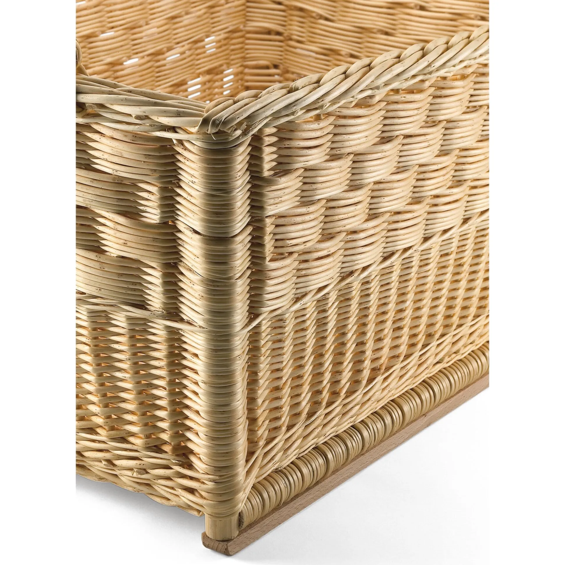 Dieser Wäschekorb hat wenig gemein mit seinen – deutlich günstigeren – Konkurrenten, die landauf, landab von fliegenden Händlern feilgeboten werden. Gute Wäschekörbe wurden schon vor mehr als 100 Jahren in dieser Art gefertigt: in der sogenannten Würfeltechnik, also mit einem doppelwandigen Geflecht, das einerseits eine sehr hohe Stabilität und andererseits eine glatte Oberfläche auf der Innen- wie auf der Außenseite gewährleistet. Auf der Unterseite ist der Korb, wie es bei solchen traditionell gearbeiteten Gebrauchskörben immer schon üblich war, mit glattgeschliffenen Holzkufen zum Schutz des Bodens ausgestattet.