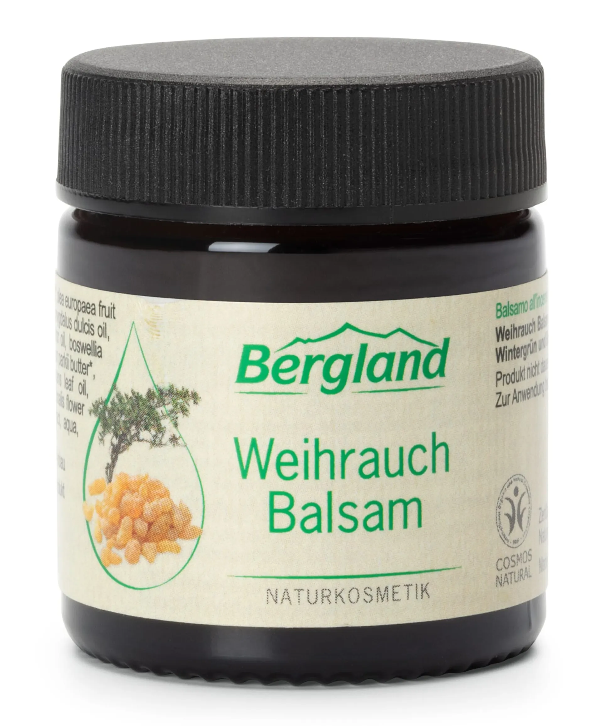Die vielschichtige Wirksamkeit der komplexen ätherischen Öle macht sich der Mensch schon seit Jahrtausenden zunutze. Vor allem in der Aromatherapie spielen die wohlriechenden Essenzen eine wichtige Rolle und jede*r weiß aus eigener Erfahrung, wie leicht Düfte Erinnerungen und Gefühle bei uns auslösen können. Je nach Art und Zusammensetzung der ätherischen Öle kann mal eine harmonisierende, ausgleichende Komponente im Vordergrund stehen, mal ist es die anregend-belebende. In seiner Aromakosmetik-Serie vereint der Naturkosmetik-Hersteller Bergland daher die pflegende Wirkung natürlicher pflanzlicher Öle mit der wohltuenden Wirkung naturreiner ätherischer Öle. Diesem traditionellen Weihrauchbalsam etwa verleihen die ätherischen Öle von Weihrauch und Wintergrün einen intensiven grün-balsamischen Duft. Das Harz der Weihrauchbäume (Boswellia), auch Olibanum genannt, wird bereits seit der Antike gewonnen und aufgrund seines feinen, balsamischen Aromas vor allem zum Räuchern verwendet. In der traditionellen indischen und arabischen Naturheilkunde wird er auch gern bei Gelenkbeschwerden verwendet. Wintergrün entfaltet bei der Massage eine wohltuend-entspannende Wärme und pflegt die Haut, besonders in Kombination mit Ringelblumenöl, Olivenöl und Sheabutter (sämtlich aus kontrolliert biologischem Anbau). In Verbindung mit einer entspannenden Massage ist der Balsam besonders angenehm bei verspannten Muskeln. Dafür den Weihrauchbalsam auf beanspruchten Körperstellen, etwa an Rücken, Schulter oder Knie, auftragen und einmassieren.