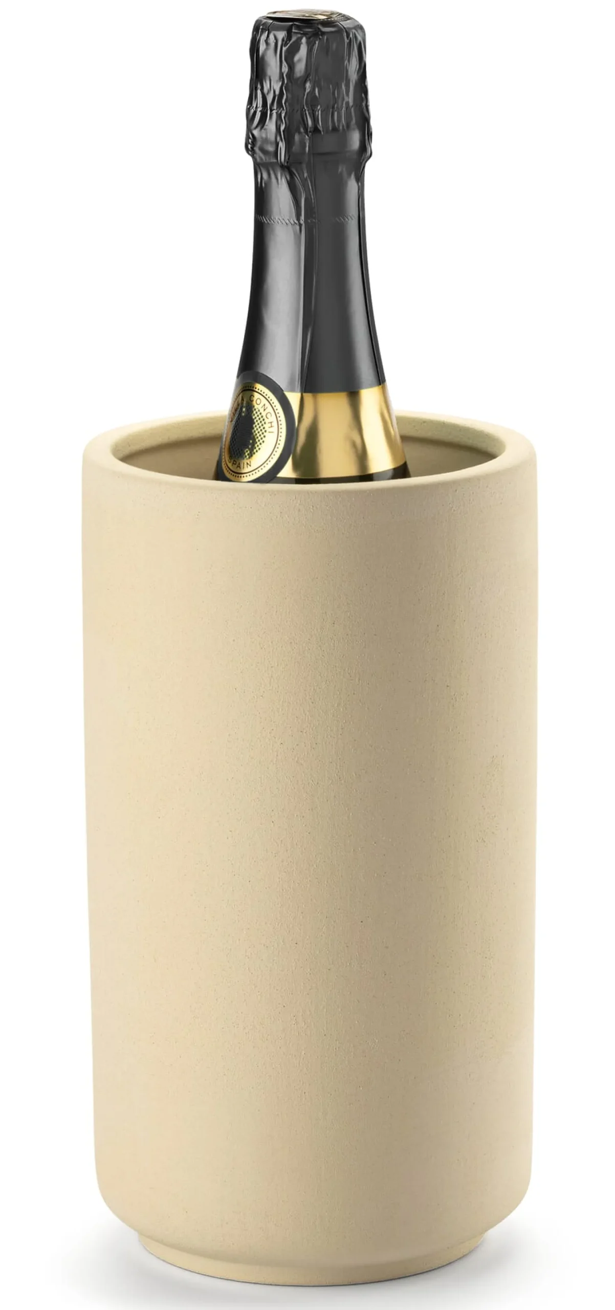Ohne Steckdose, Kühlmanschetten oder Eiswürfel: ein selbstkühlendes Gefäß für Wein und Sekt nach dem Prinzip der Verdunstungskühlung. Wie’s funktioniert? Bei der Verdunstung von Wasser wird Energie benötigt, die in Form von Wärmeenergie der Umgebungsluft entzogen wird. Dies führt zu einer Absenkung der Lufttemperatur. Die konkrete Auswirkung: Aufgrund der Porosität des gebrannten Tons diffundiert Wasser durch die Wandung des Kühlers und verdunstet an der Außenseite. Dadurch wird dem Inneren des Kühlers Wärmeenergie entzogen und die Temperatur deutlich abgesenkt. Die Kühlleistung der Keramik von Kaufmann aus Rehau ist beeindruckend: Wein oder Sekt bleiben stundenlang kühl. Der Boden ist außen mit einer 1/3-hohen mattgrauen bzw. mattweißen Glasur überzogen, die unglasierte Version ist ausschließlich im Innern mit einer transparenten Glasur versehen. Somit wird die Abgabe von Feuchtigkeit zum Boden des Gefäßes verhindert. Um die Wirkung des Kühlers zu aktivieren, muss er in kaltes Wasser getaucht oder einige Minuten mit kaltem Wasser befüllt werden. In diesem Fall hilft viel auch viel, denn je länger er gewässert wird, desto besser die Kühlwirkung.