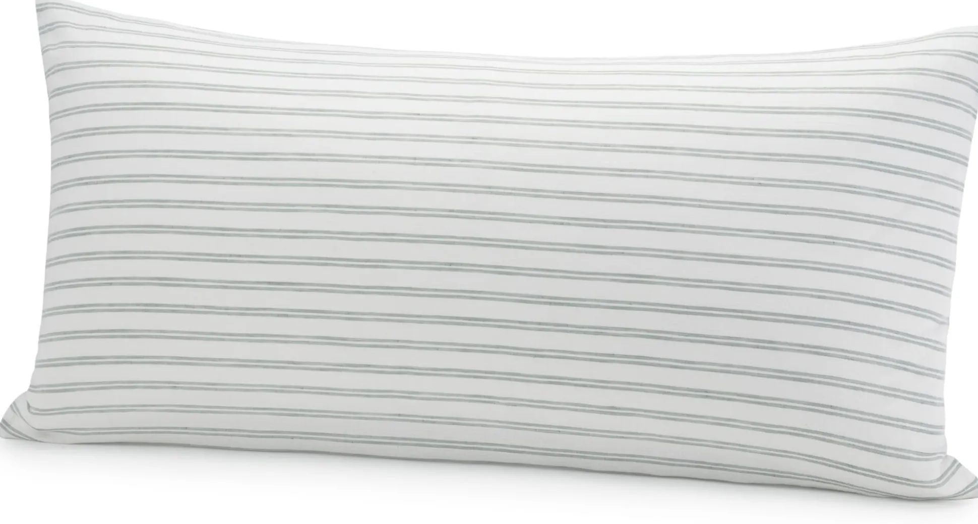 Für das leinwandbindige Gewebe wird in der Kette feines Baumwollgarn in Weiß und im Schuss grüngraues Leinengarn mit jeweils variierender Garnstärke verwendet. Dadurch erscheint die unifarbene Seite leicht meliert. Auf der anderen Seite verlaufen schmale Doppelstreifen in Grüngrau auf dem weißen Fond – daher haben Sie die Wahl: grüngrau changierender Farbakzent oder frisches Weiß mit lichten Streifen. Das Halbleinen ist trotz des feinen Gewebes strapazierbar, vorzugsweise sollte es jedoch nicht in den Trockner gegeben werden, da dies die Fasern aufgrund der hohen Hitze und der Reibung belastet. Zudem können Sie die Bettbezüge nach dem Trocknen an der Luft leichter wieder glattbügeln, dafür die Wäsche nicht ganz trocknen lassen. Alle Bezüge sind mit Reißverschlüssen versehen.
