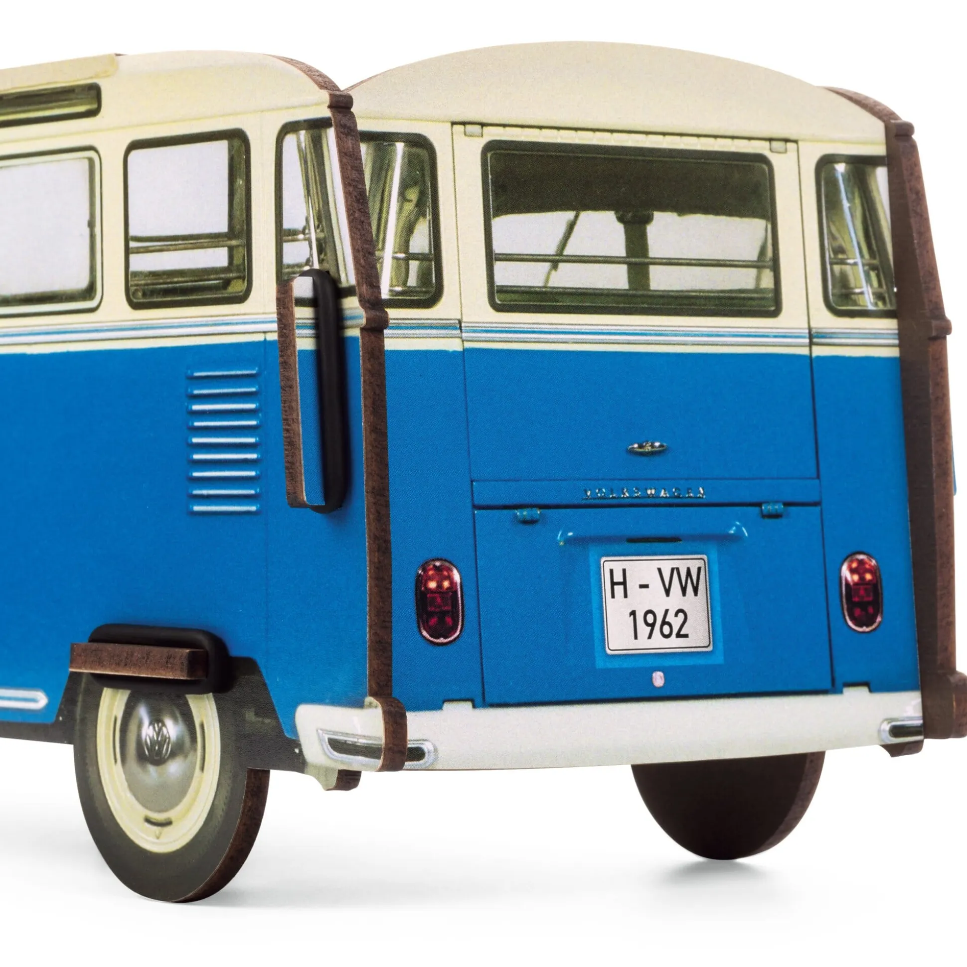 Bausatz mit HDF-Platten (Stärke 3,2 mm), bedruckt mit Spielzeugfarbe, und Gummiringen zum Fixieren der Steckverbindungen. Ein Kugelschreiber liegt bei. Lieferung ohne Inhalt.