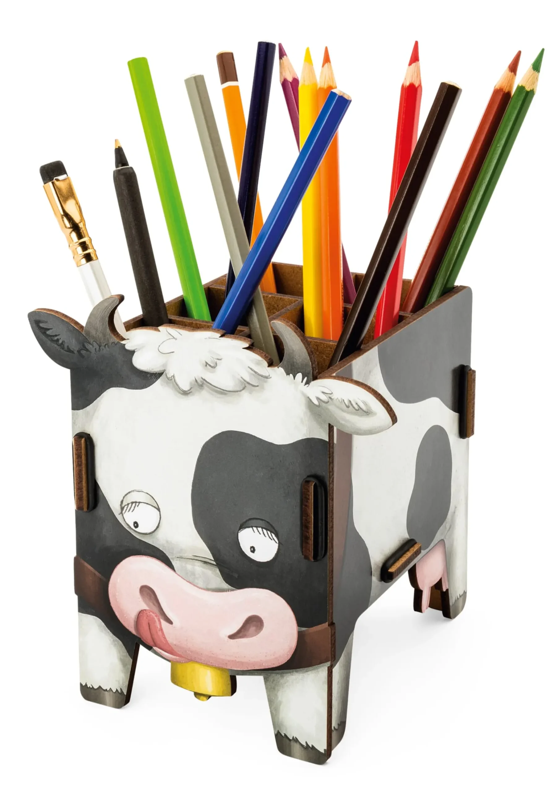 Kleiner als die Truhenhocker gleicher Gestaltung, aber deshalb nicht weniger praktisch: Die Stifteboxen von Werkhaus – als Tier oder in Form eines legendären Fahrzeugmodells. Neben Stiften und Büroutensilien findet hier auch allerhand anderer Kleinkram (wie etwa Werkzeug) Platz.