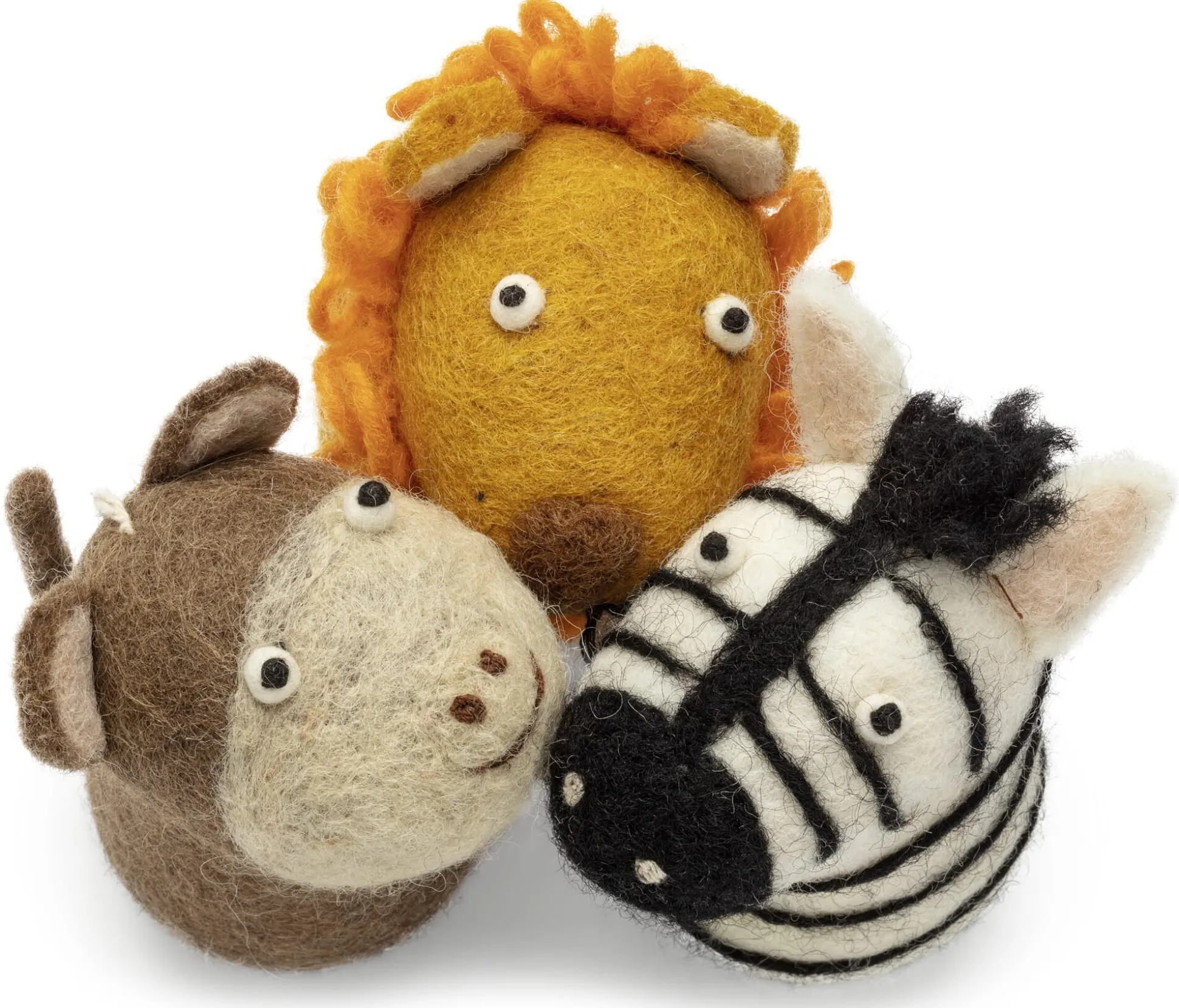 Kommt das Kind nicht nach Afrika, kommt Afrika eben zum Kind. Diese handgefilzten Figuren machen Kinder auch außerhalb der Serengeti mit deren Wildtieren vertraut. Giraffe und Elefant, Löwe und Zebra und obendrein der Affe heben in ihrer minimalistischen Gestaltung ein Charakteristikum der Tiere anschaulich hervor. So stimmen sie nicht nur auf den Ausflug in den Zoo ein, sondern bereichern ebenso ansprechend das Mobile über dem Kinderbett oder den Fensterschmuck – oder sie übernehmen die Hauptrollen während der Erlebnis-Safari auf der Spielfarm des Kinderzimmers. Und wer weiß, vielleicht kommt Ihr Kind ja doch noch nach Afrika, dann kennt es sich mit den Tieren der Serengeti schon ziemlich gut aus.