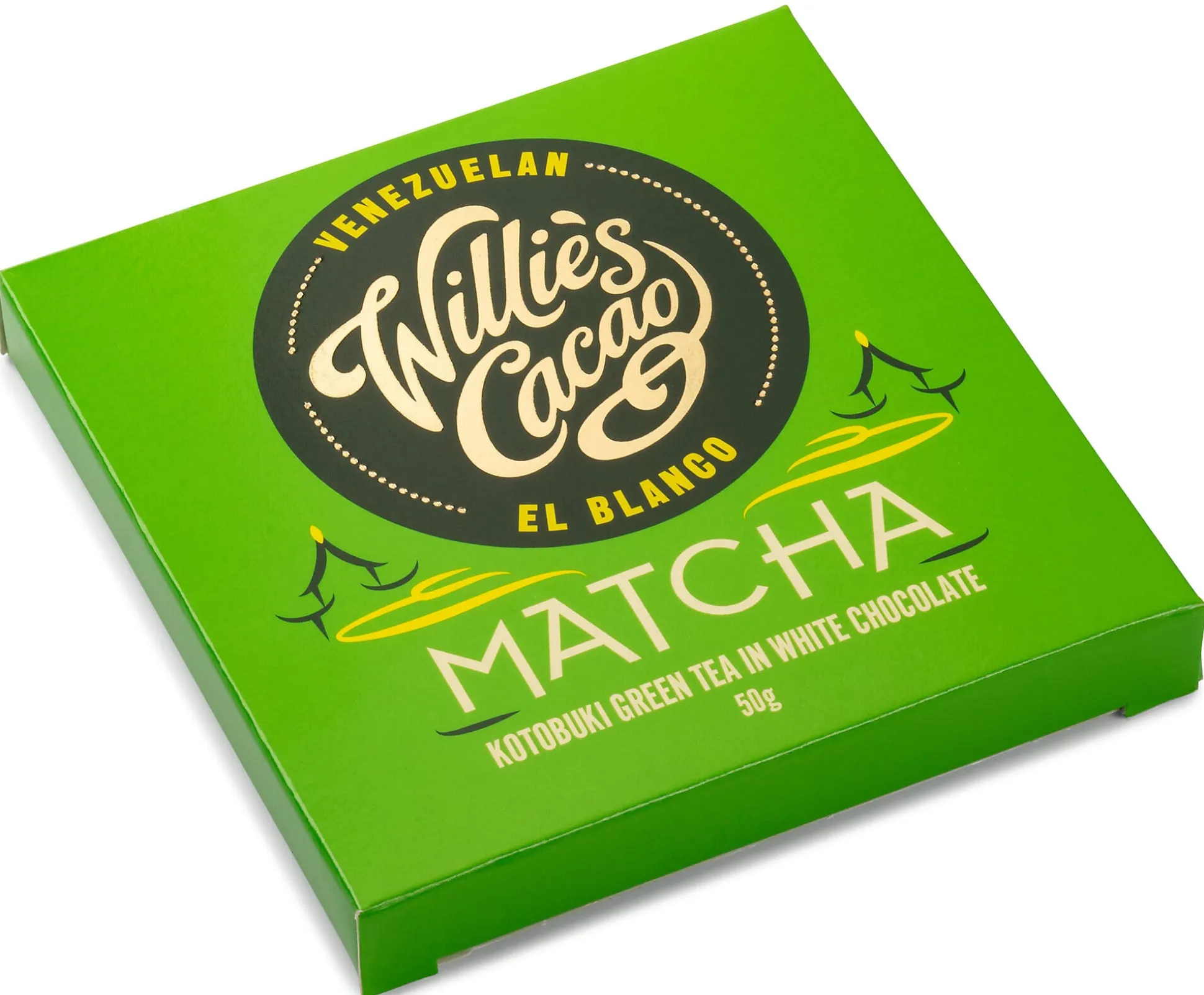 Weiße Schokolade – hier aus venezolanischer Kakaobutter, Rohrohrzucker und Milch – wird bei dieser Tafelschokolade mit Kotabuki-Matcha verfeinert. Die Schokolade besitzt einen intensiven Geschmack und eine ungemein cremige, sanfte Textur. Kurz: ein Genuss, der seinesgleichen sucht.