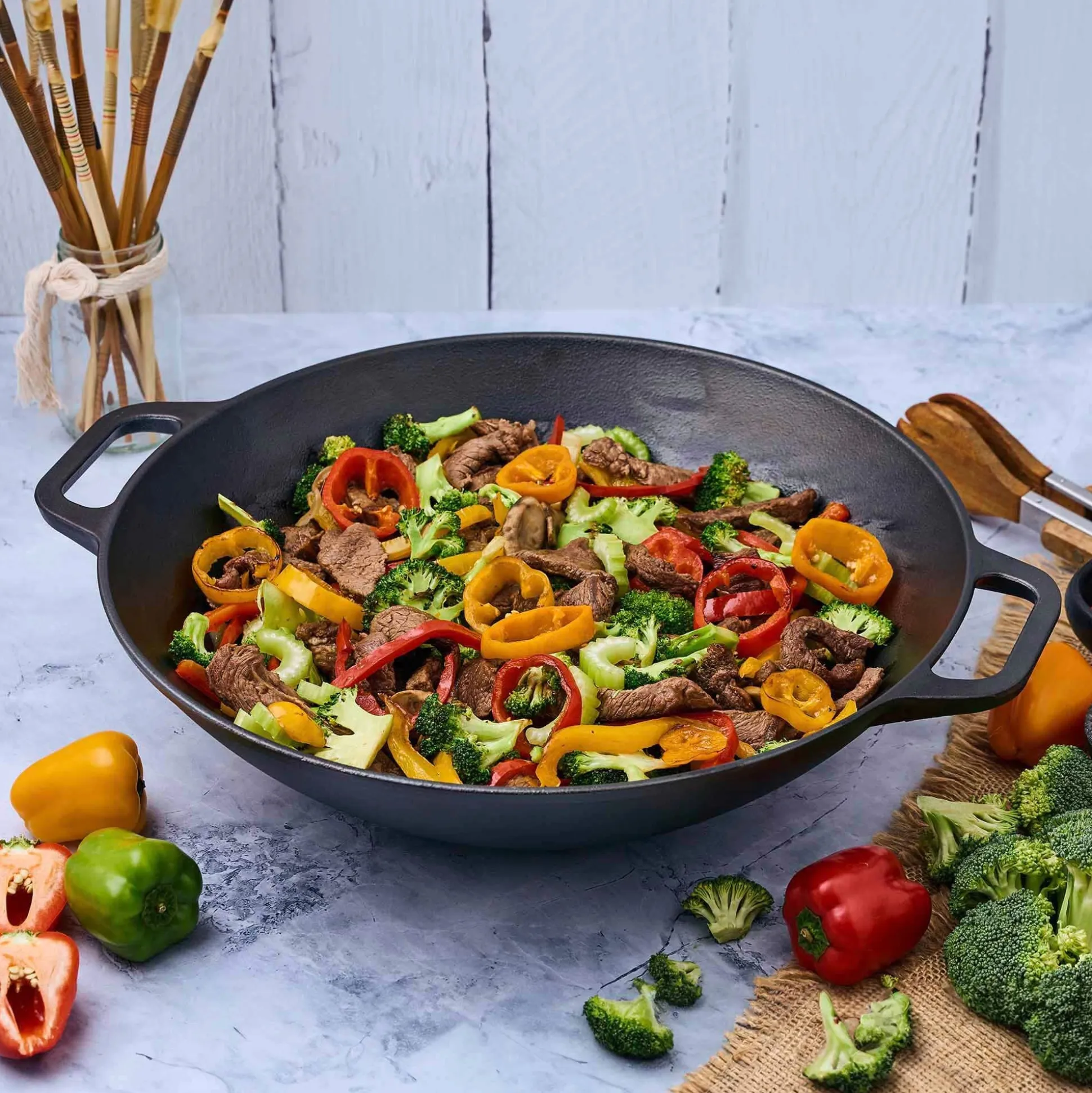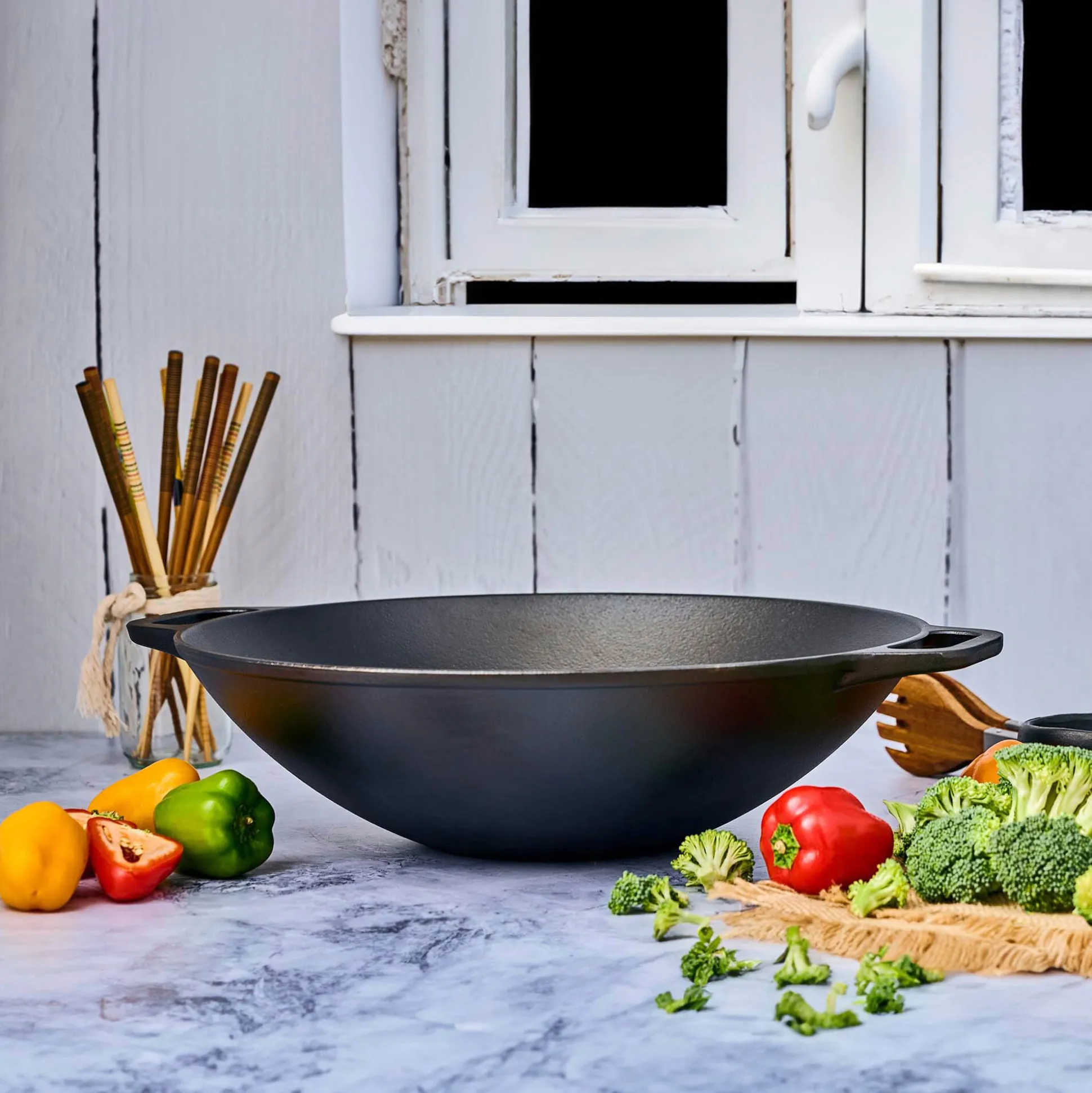 - Daher sind gute Woks aus Gusseisen