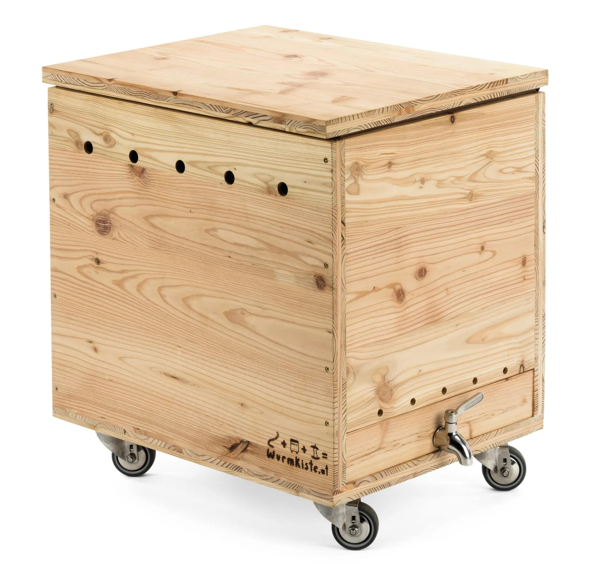 An drei Stellen haben wir dieses nützliche gute Ding exklusiv für Manufactum noch verbessern lassen. Nur bei uns bekommen Sie die Wurmkiste des österreichischen Herstellers mit einem Korpus aus Lärchenholz, mit Gummirollen und einem Wasserhahn aus Edelstahl.