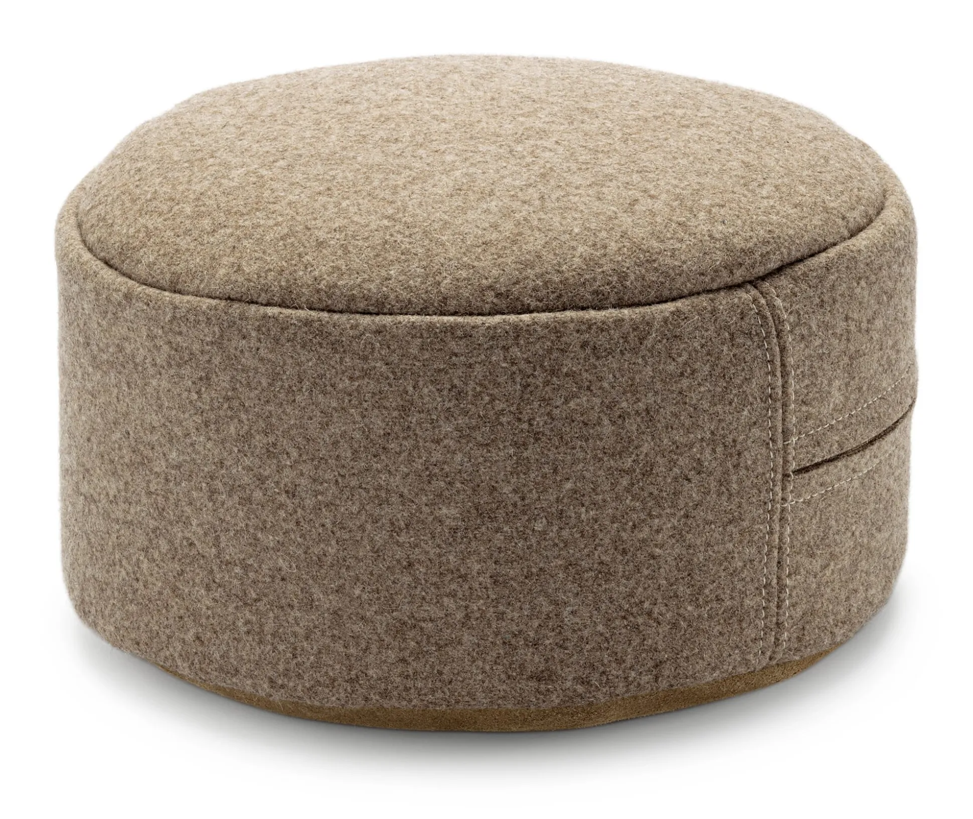Der Wollfilzbezug und das Inlett aus Baumwolle sind jeweils mit einem Reißverschluss versehen. So können Sie zum einen die Sitzhöhe individuell anpassen. Zum anderen lässt sich der Bezug ganz abnehmen und bei Bedarf reinigen. Schurwolle ist generell jedoch recht unempfindlich und zudem schmutzabweisend. Durch ihre schuppige Oberfläche sind die einzelnen Fasern sehr glatt, sodass Staub & Co. nicht so leicht daran haften bleiben und die Wolle über eine Art Selbstreinigungseffekt verfügt. Die untere Seite des Sitzkissen-Bezugs besteht aus unempfindlichen Rindveloursleder. Es ist rutschfester als der Wollfilz und zeigt immer an, welche Seite auf den Boden gehört.