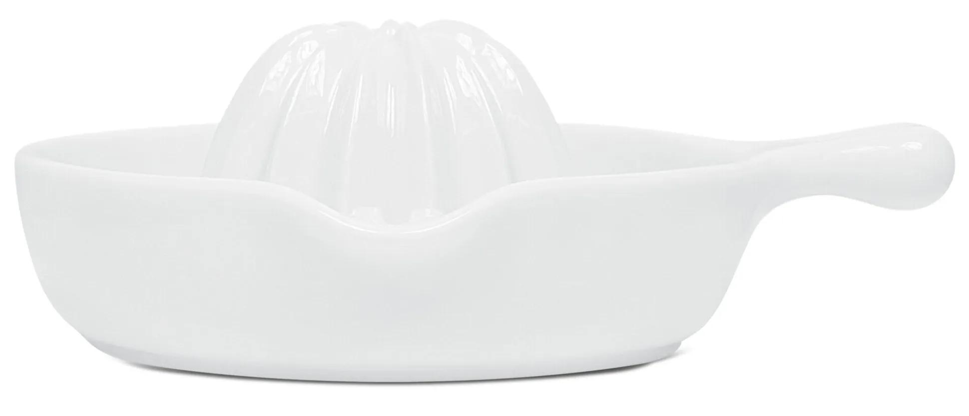 Die Handpresse, die wirklich funktioniert! Formschöne Zitruspresse aus glattem und gut zu pflegendem Feinporzellan mit hoher Oberflächenhärte. Dank der scharfkantigen Profilierung des zentralen Zapfens lässt sich der Saft effektiv und ohne Kraftanstrengung aus dem Fruchtfleisch lösen. Kerne werden auf beiden Seiten bei vorsichtigem Ausgießen aufgefangen. Eine in das Porzellan eingebrachte Gummierung sorgt für sicheren Halt des kleinen Arbeitsgeräts auf der Arbeitsfläche. Der kleine Griff ist ergonomisch ausgeformt und erleichtert die Handhabung.